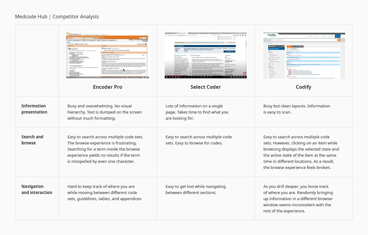 Competitor Analysis: Here is a brief analysis of three popular online coding tools in use today. I focused only on reviewing the products based on how the information was presented, and how easy it was to navigate and interact with.